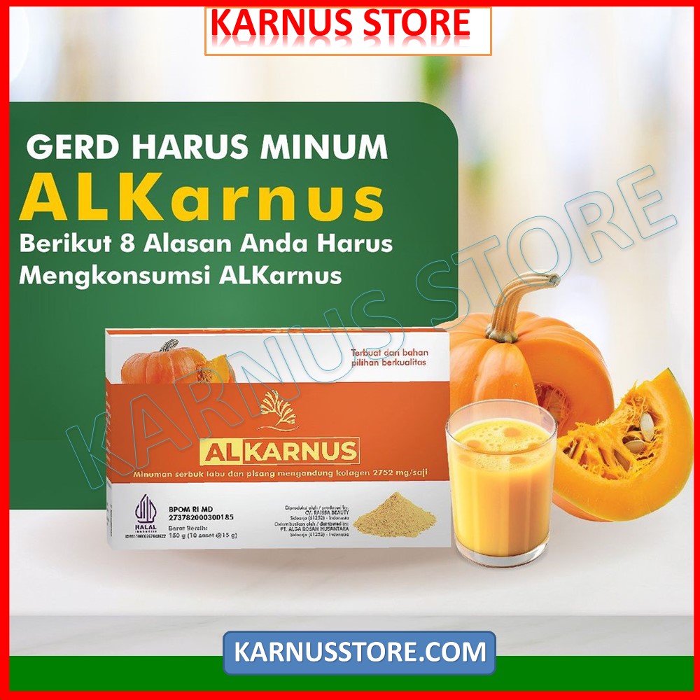 🙋♂ Bahan-bahan alami dalam AL Karnus, yaitu labu kuning, tepung pisang, kolagen sapi, dan ganggang merah.